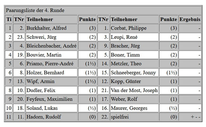 Paarungen 5. Runde 03.12.2025 Klub Open 2025 / 2026