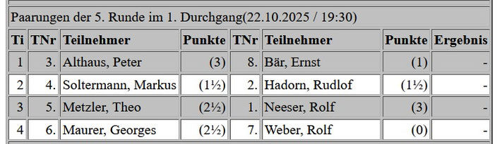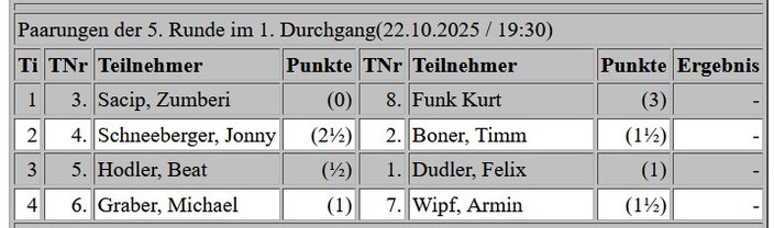 Klubmeisterschaft 5. Runde 22.10.2025