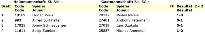 | SK Biel 1 | SK Biel 2 |